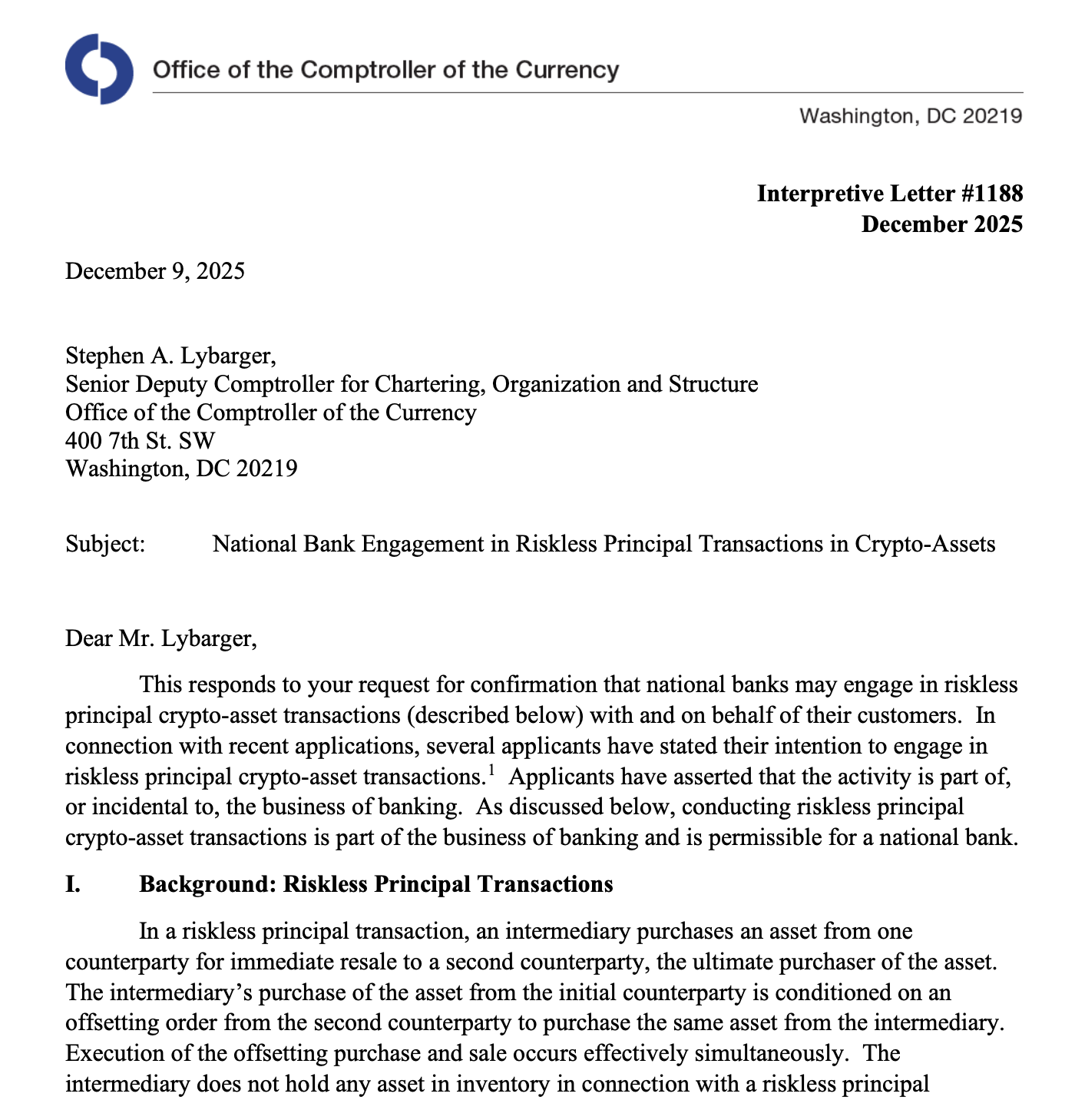 - OCC crypto guidance